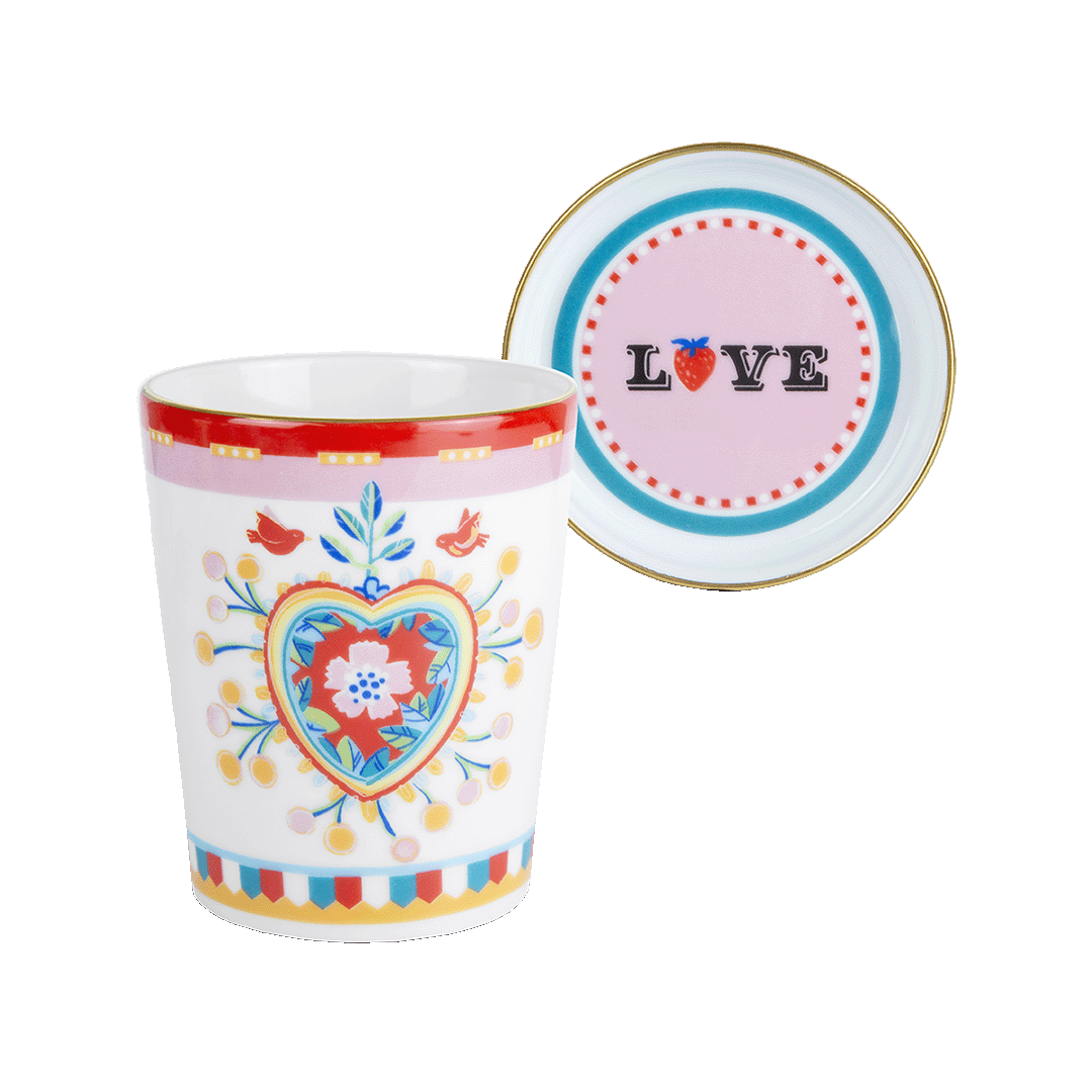 BACI MILANO Стакан "Сердце" с крышкой/блюдцем