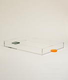 Акриловый поднос — универсальный домашний аксессуар. Подойдет для сервировки стола, переноса кофейной или чайной пары, а также для хранения любимых вещей: колец, цепочек, духов, свечей. Акцентная деталь — яркие геометрические ручки по обеим сторонам подноса для удобства транспортировки.