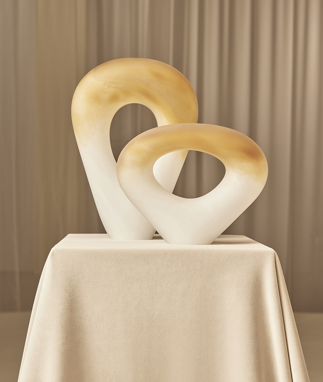 Дизайнерская скульптура из стекла ручной работы в форме петли — настоящее произведение искусства, которое станет ненавязчивым акцентом в любом современном интерьере. Ее плавные линии и органическая форма создают ощущение легкости и динамичности одновременно.