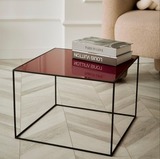 Журнальный столик французского бренда Athezza, специализирующегося на изделиях из металла. Каркас столика выполнен из металла, столешница – из глянцевого цветного стекла.